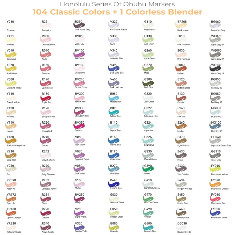 Ohuhu Honolulu B Markers 104 farver (Brush & Fine Tip)