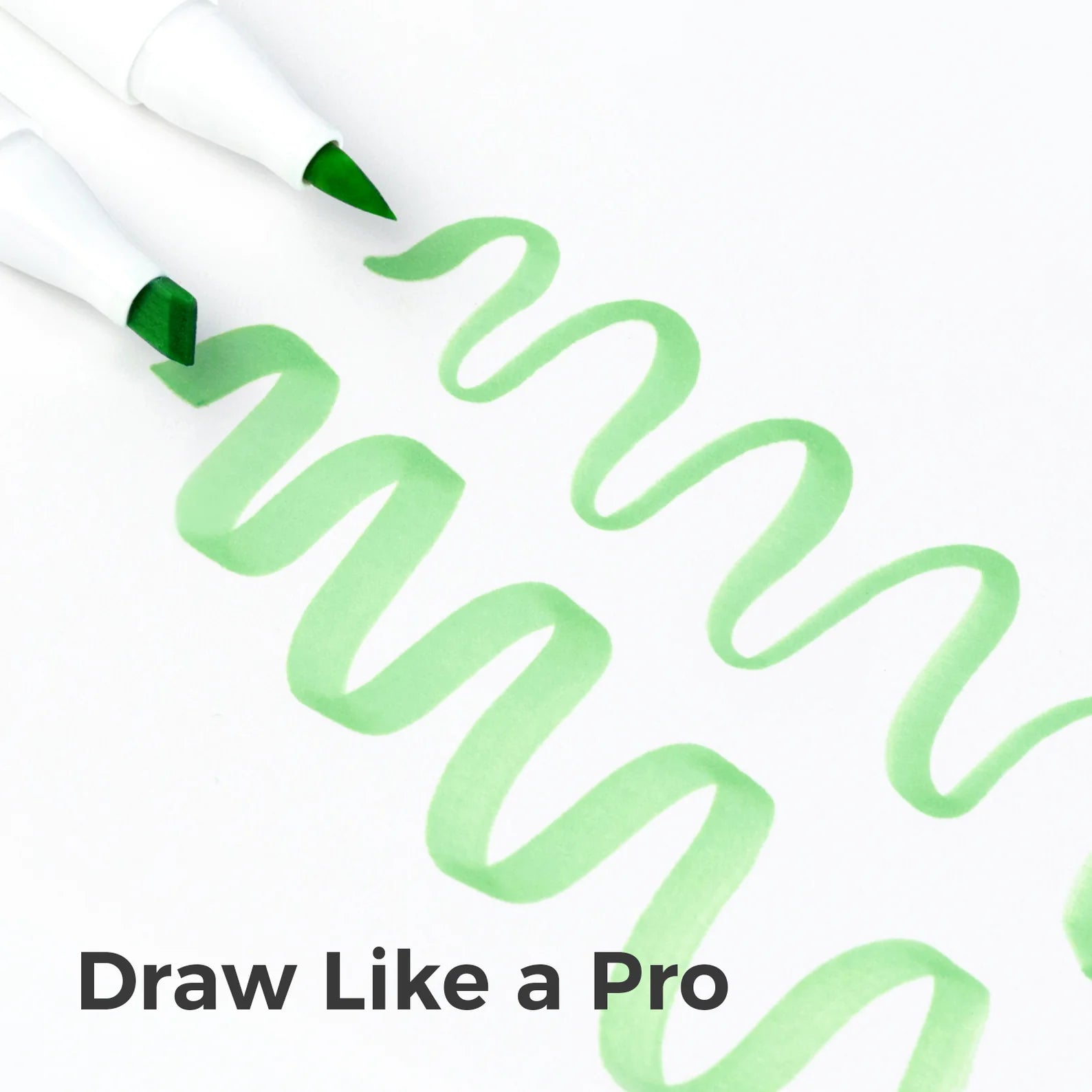Spild ikke tid på at lede efter den rigtige farve. Farvekodede hætter forhindrer spidserne i at tørre ud og hjælper dig med at finde enhver markør på et øjeblik. Som en bonus holder den gratis bæretaske dine markører organiserede og transportable til ethvert farvelægnings eventyr! Det er også en god idé til en julegave.
