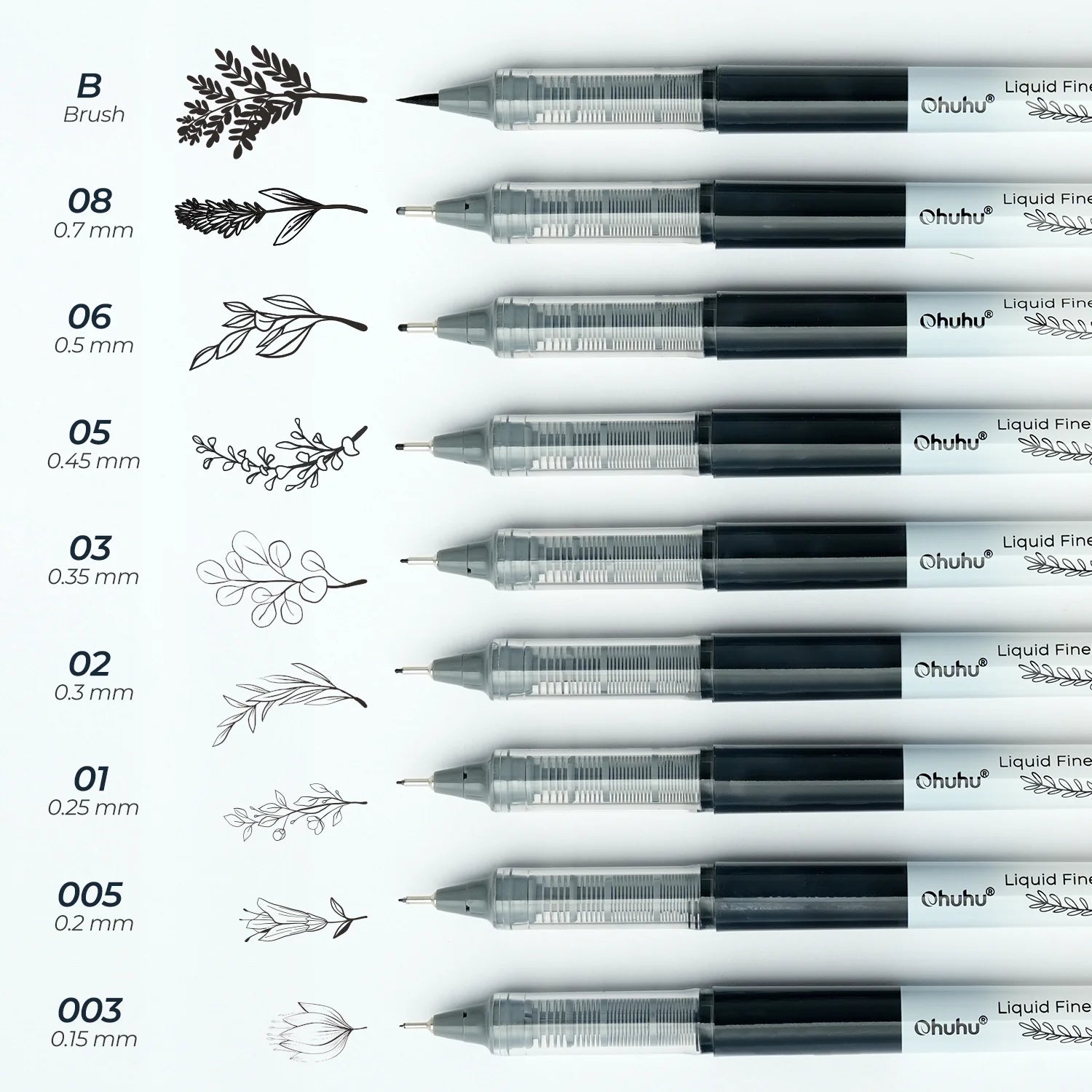 Ohuhu Kohala flydende fineliner tegnepenne, 9 stk.